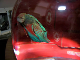 Beautiful fish! "Fluffy"? Seriously?! Tee hee....Doesn't he like a bigger aquarium than that? I don't know much about fish, it just looks sorta small. Maybe they prefer that.